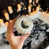 Creamy, sandalwood-scented softness with a black crescent moon perched on top—elegantly eerie and hauntingly smooth.