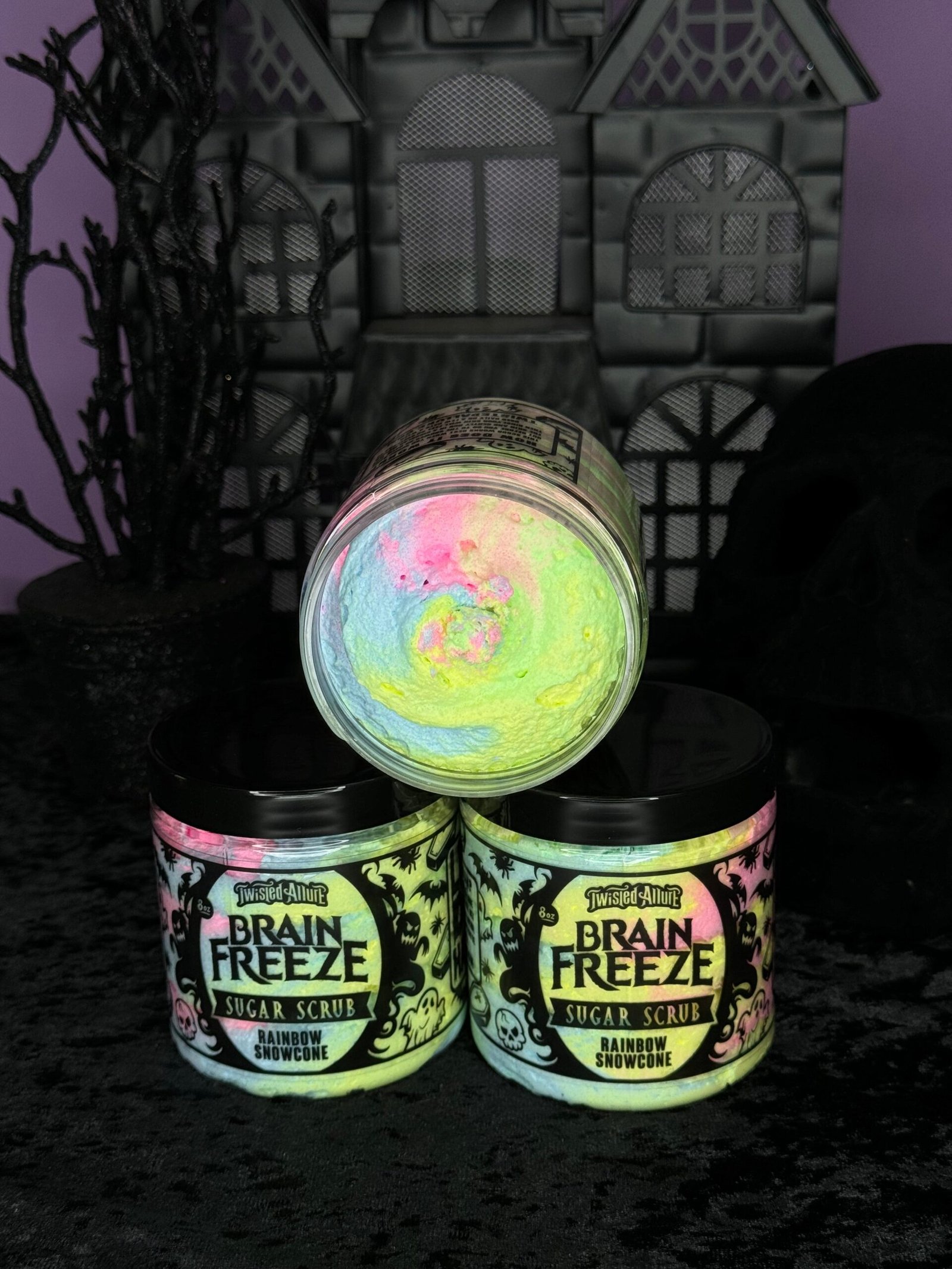 Rainbow snowcone vibes in a swirl of icy sweetness—scrub it on and chill to the bone.