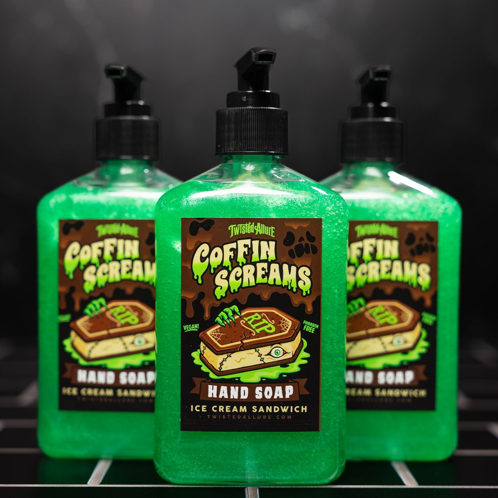 It smells like a vanilla ice cream sandwich… dug straight from the grave. This eerie green lather is creamy, chilling, and drop-dead decadent.
